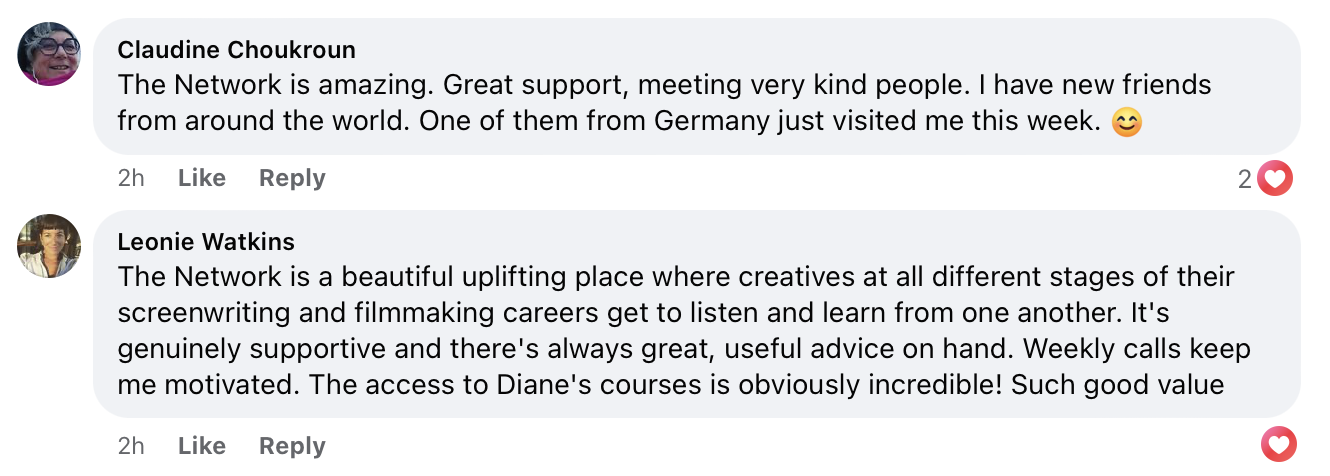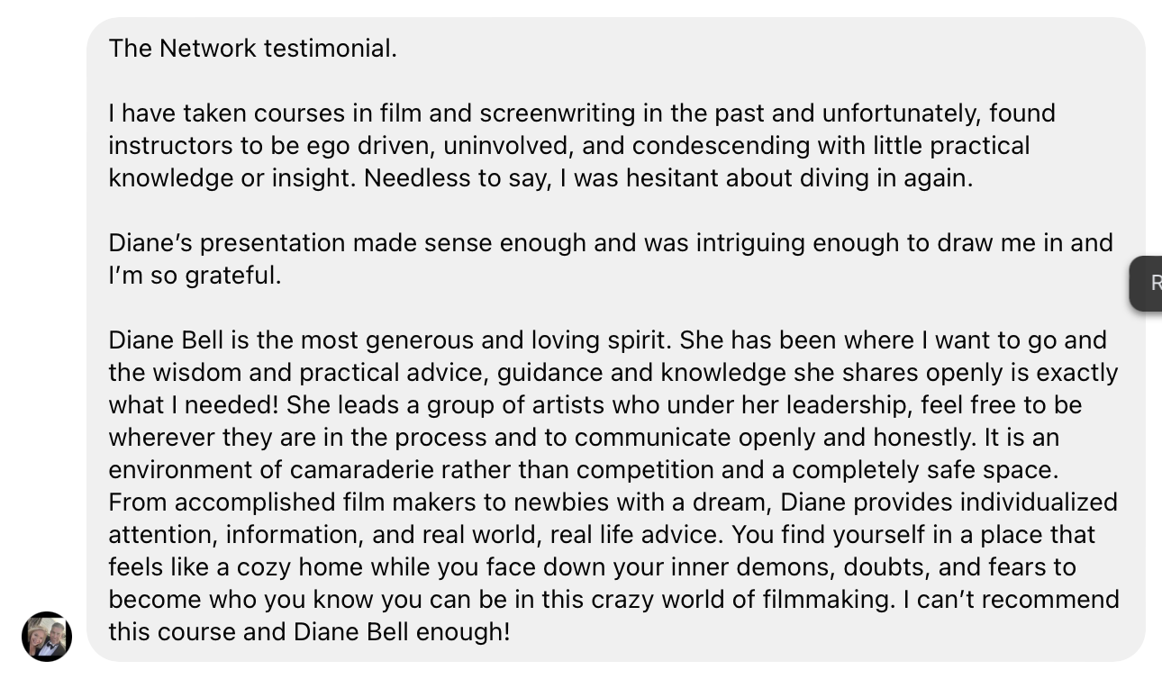 - Immediate access to THE NETWORK library of programs, including Revise Your Script (4 modules), Sell Your Script (4 modules), The Make Your Movie Bootcamp (8 modules), The Directing Masterclass (5 modules) and more (literally $4k+ of video based courses covering everything you need to succeed)