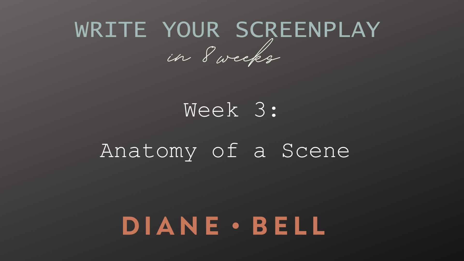“If you are ready to quit talking about writing a screenplay and actually doing it, take this course. I started with a scrap of an idea and in 8 weeks wrote a full-length screenplay. Now I'm in discussions about it with an independent Hollywood producer. Diane Bell does an outstanding job of taking you step-by -step to reach your goal.“